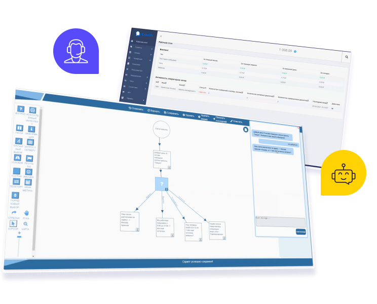 Интеллектуальные Twin-боты работают в любых чат-мессенджерах и на сайтах.